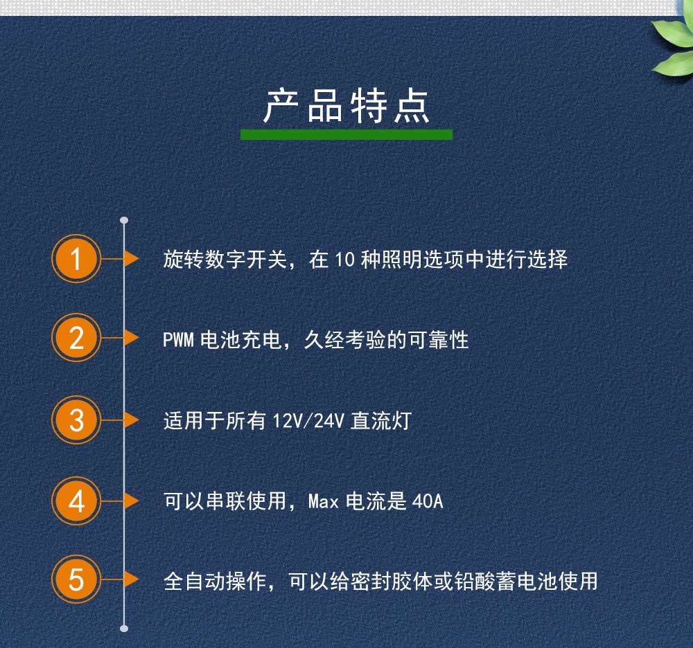 SunLight?太陽能照明控制器,是結合了SunSaver?設計用于自動照明控制功能的微型控制器。廣泛應用于路燈、停車場、公交站和標牌等領域。