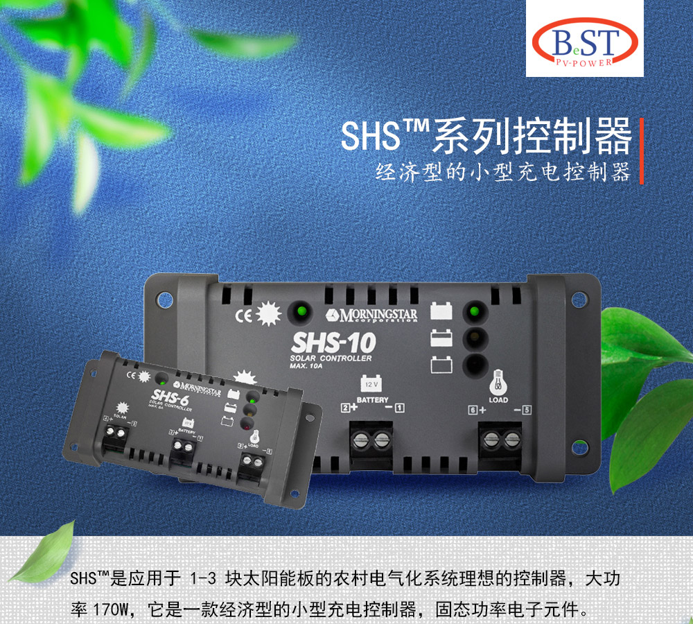 SHS?是應用于1-3塊太陽能板的農村電氣化系統理想的控制器,大功率170W,它是一款經濟型的小型充電控制器,固態功率電子元件。
