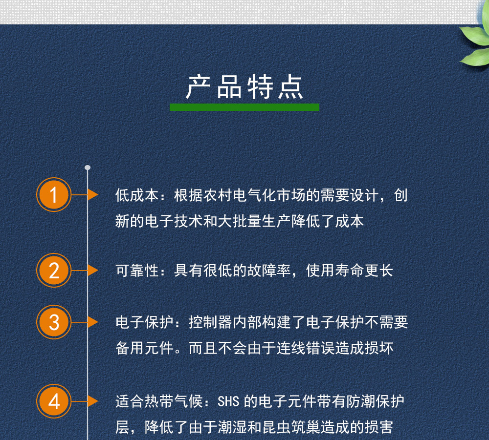 低成本:根據農村電氣化市場的需要設計,創新的電子技術和大批量生產降低了成本;
