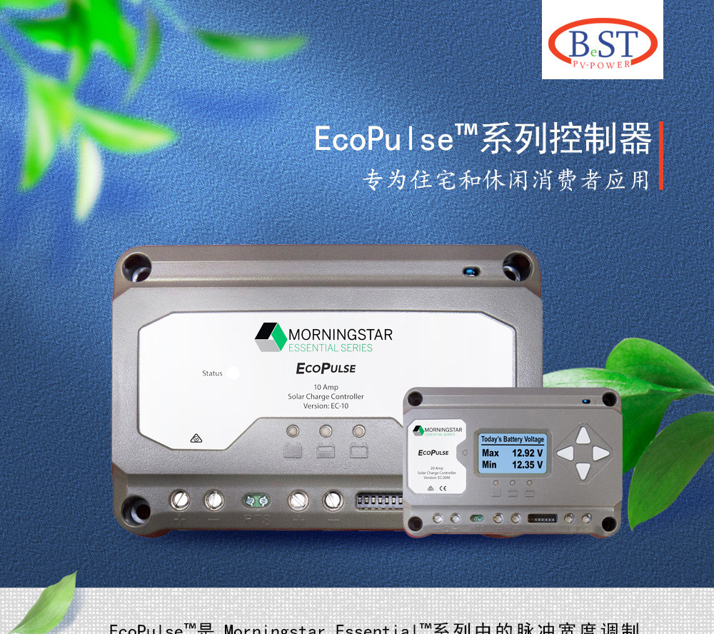 EcoPulse?是Morningstar Essential?系列中的脈沖寬度調制(PWM)太陽能充電控制器,可提供必要的離網電池調節功能。該控制器易于使用,專為住宅和休閑消費者應用而開發。