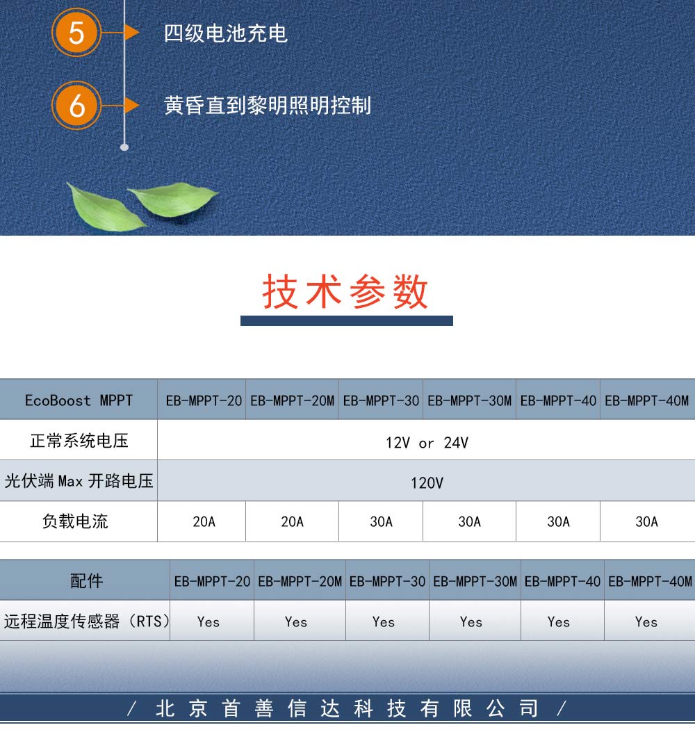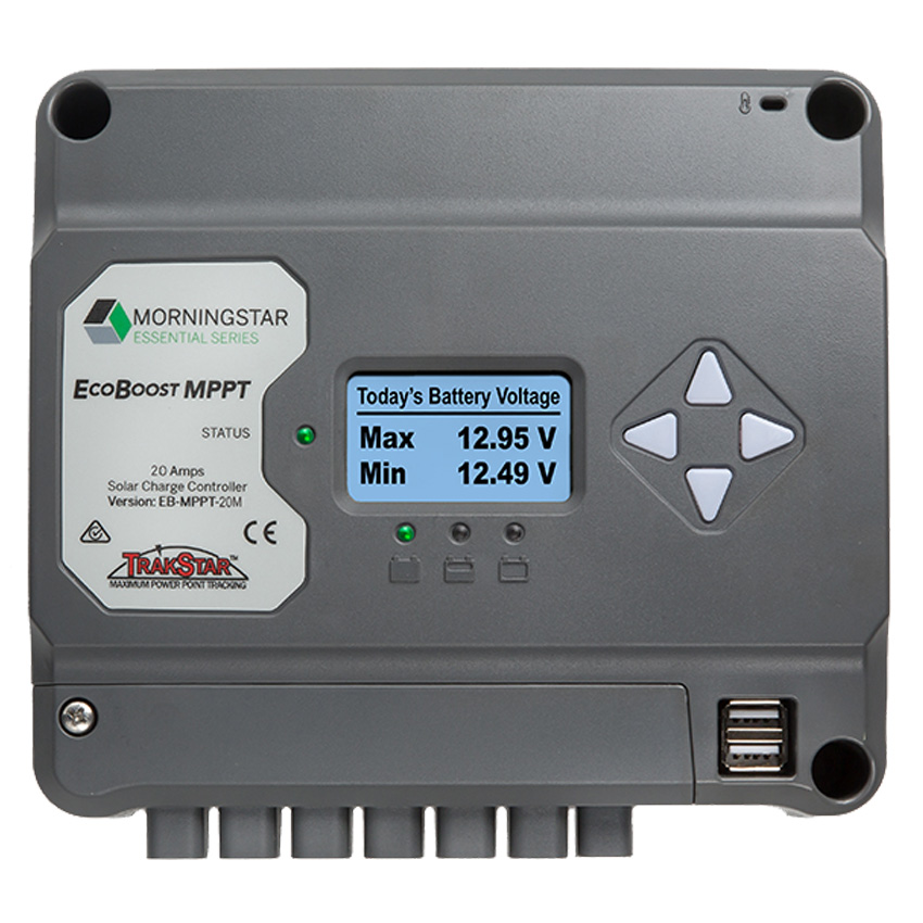 新型EcoBoost MPPT?是Morningstar Essential系列中具有MPPT功能的太陽能充電控制器。該控制器是為住宅和休閑消費者應用而開發的,其中MPPT控制器需要為其他類型控制器不支持的模塊提供額外的電源和調節。該產品可提供20和30伏安電壓額定值,適用于12伏和24伏電池系統,有帶顯示屏和不帶顯示屏版本。