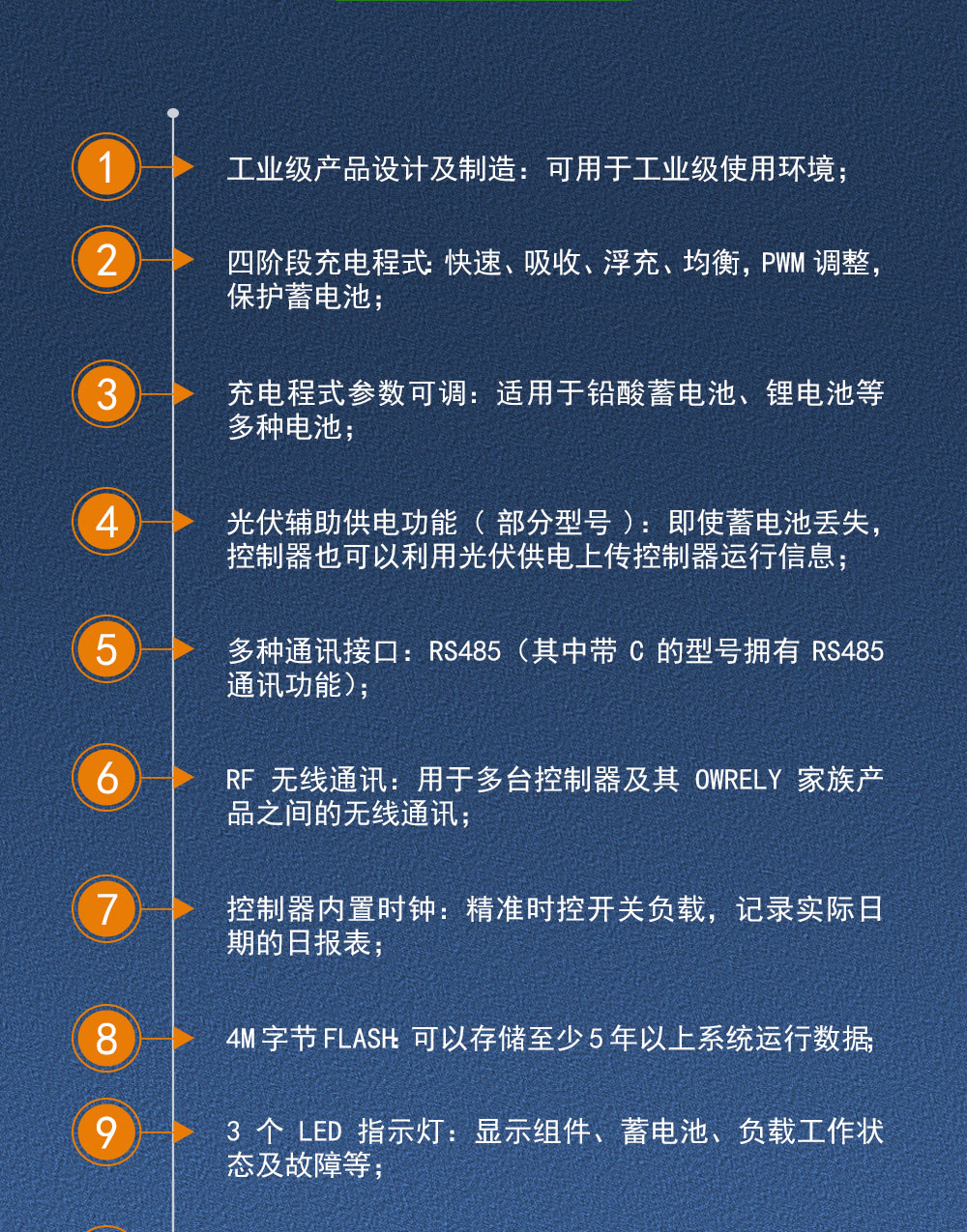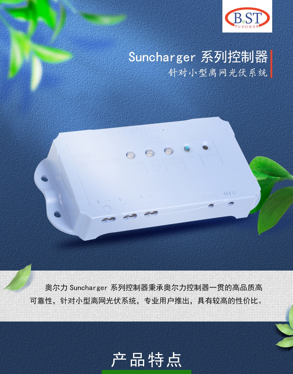 奧爾力Suncharger系列控制器秉承奧爾力控制器一貫的高品質高可靠性,針對小型離網光伏系統,專業用戶推出,具有較高的性價比。 |